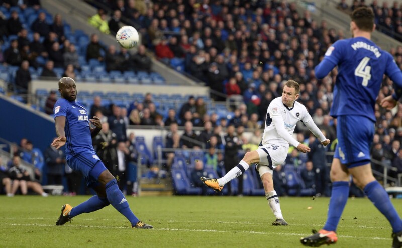 The Lions were denied a penalty early in the second half after defender Sean Morrison appeared to foul Lee Gregory when the latter was through on goal.