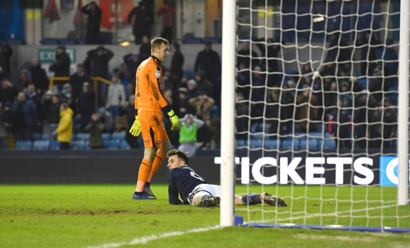 The Lions’ top-scorer had a great chance to win it at the death when Jed Wallace put the ball into his path, only for the frontman to finish past the left upright.