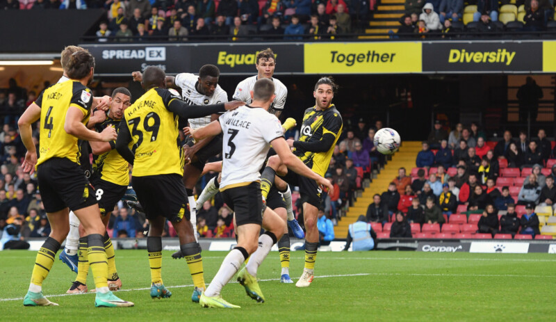 Watford substitute Imran Louza was marking Harding but lacked the physicality or height to adequately compete. The Hornets player did have a brief hold of his opponent’s shirt but quickly let go.