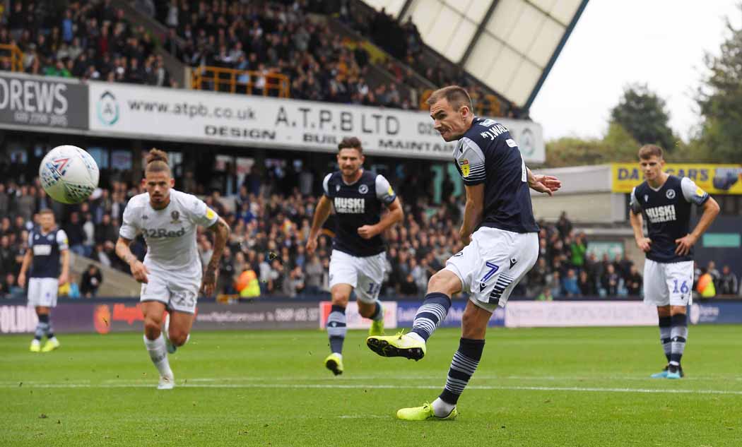A fired up Millwall started fast. Ezgjan Alioski did not like a fair but crunching challenge from Ryan Leonard. Kiko Casilla saved unconvincingly with his legs from Mahlon Romeo within the opening 90 seconds.