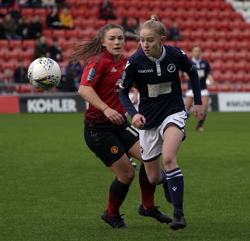 Millwall Lionesses lost 8-0 at FA Women’s Championship leaders Manchester United at Leigh Sports Village.