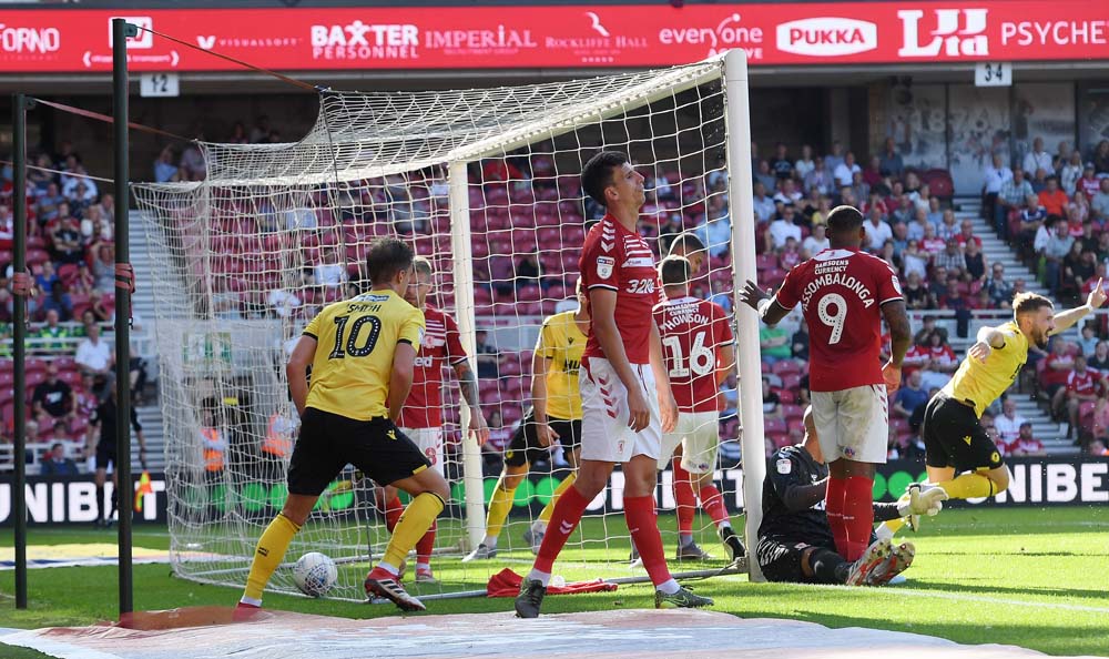 Smith’s header was going in until Adam Clayton flicked it against the underside of the crossbar from his position on the goal-line.
