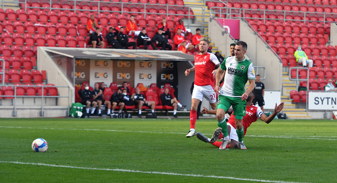 Six minutes later and Alex Pearce had to be alert to clear a dangerous-looking corner off the goal line as Rotherham continued to dominate the early stages.