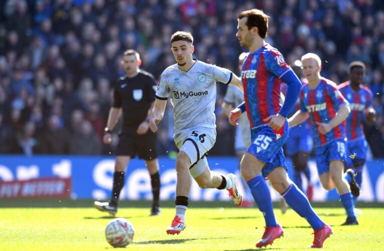 Neghli looks a doubt for Tuesday’s home game against Bristol City although the Lions will be boosted by the return of Tristan Crama and Aaron Connolly, both cup-tied against the Eagles.