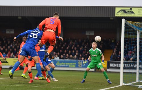 Rod McDonald’s excellent raking cross from the left was walloped onto the signage on the top of The Chemflow End stand by Dylan Connolly.