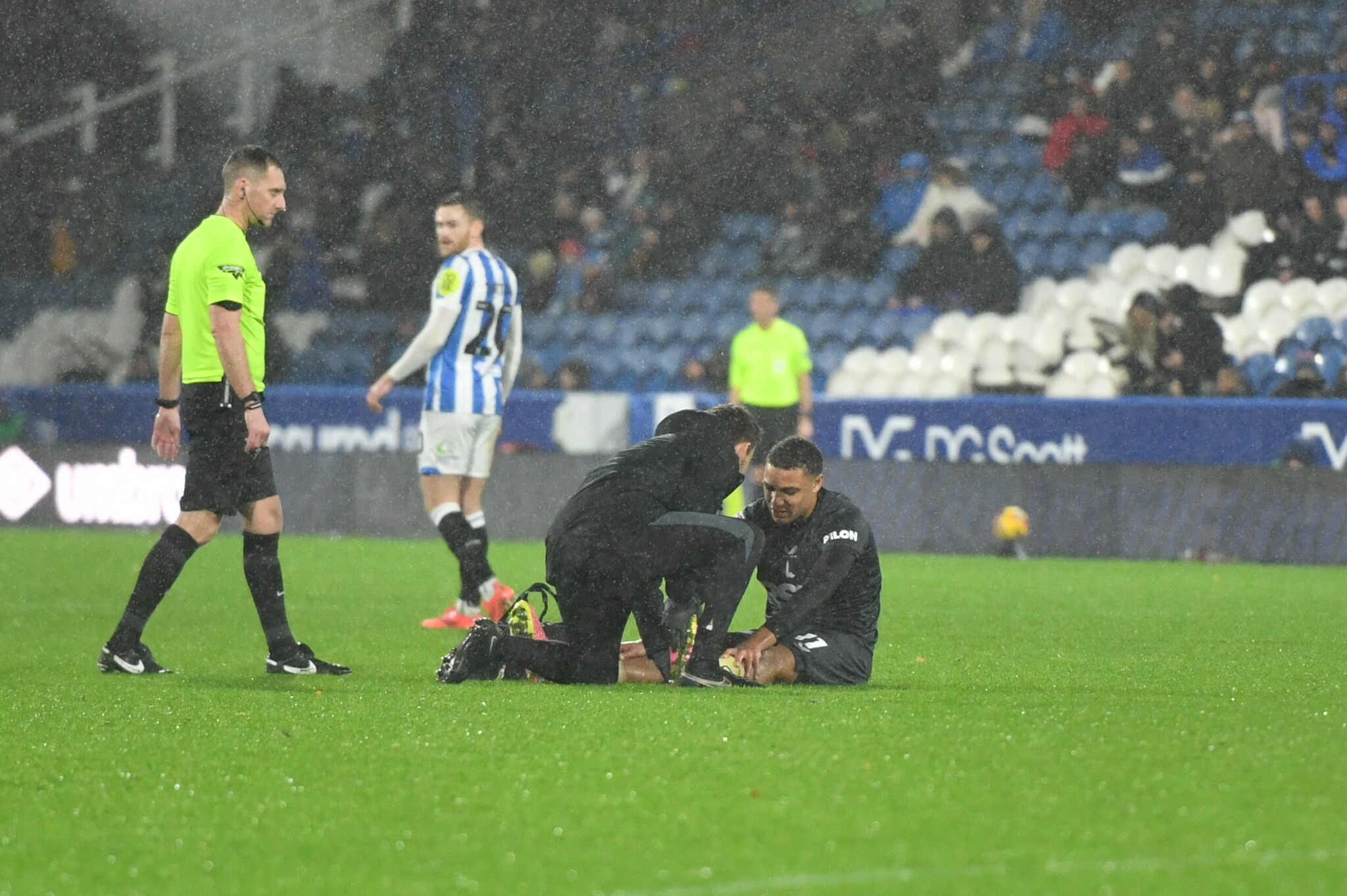 The forward, who spent nearly a year side-lined with a hamstring complaint before returning to action at the start of last month, received treatment on the John Smith’s Stadium turf before being replaced by Danny Hylton late on.