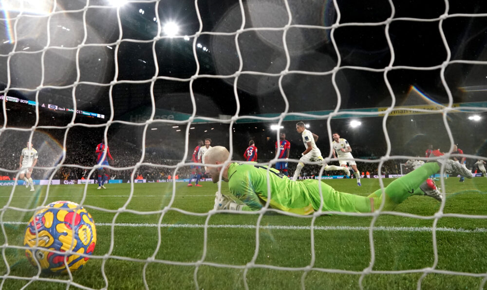 Marc Guehi’s awkward hand in the air, which was in an unnatural position, stopped Liam Cooper’s header from a Raphinha corner and gave Kevin Friend no other option than to point to the spot.