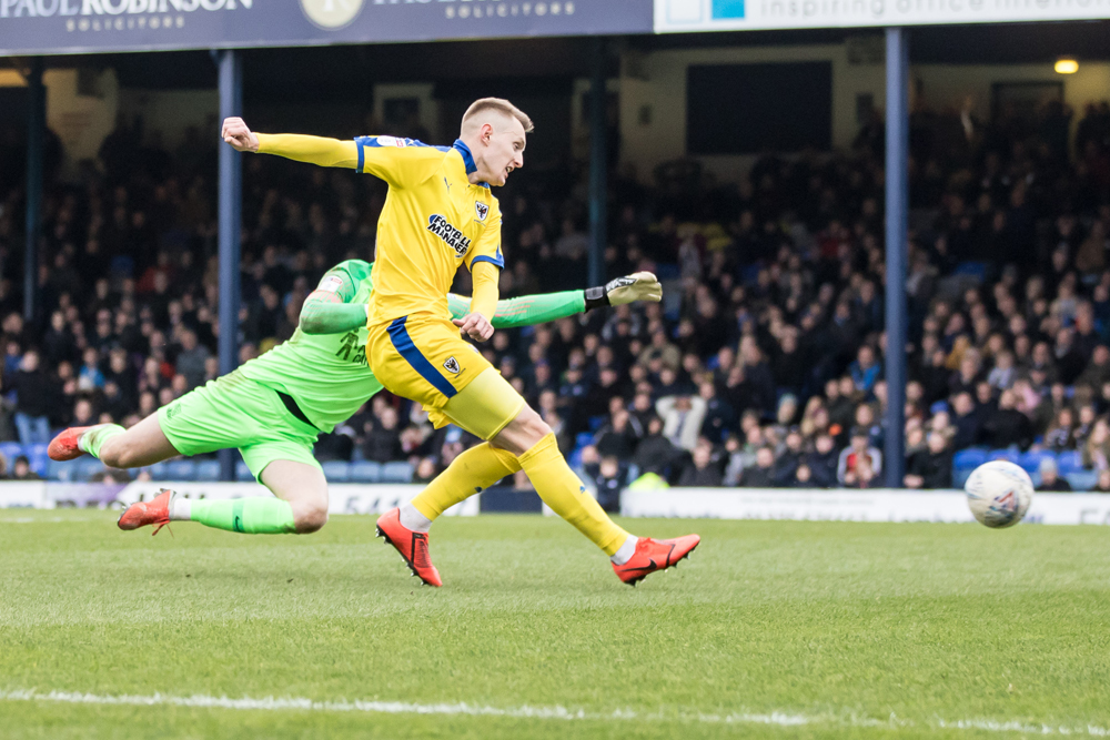 Wimbledon’s Joe Pigott found himself free and in the penalty box with just keeper Mark Oxley to beat soon afterwards, but his tame attempt was collected easily.