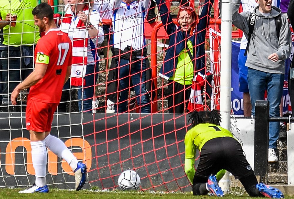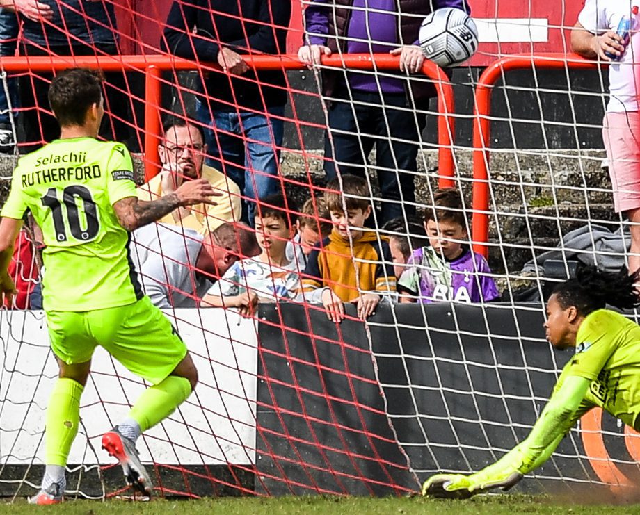 Rutherford completed his hat-trick in first half injury time when given room in the area to squeeze a shot under Boyce-Clarke.