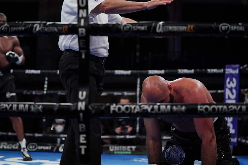Dubois’ left eye was completely shut when he took a knee against Joyce – effectively indicating he did not want to continue.