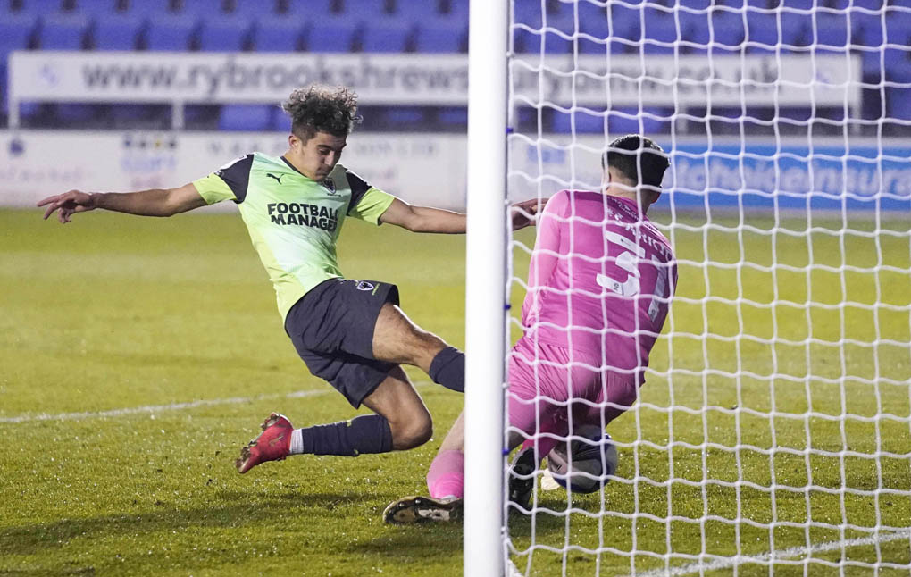 Harry Chapman put the Shrews in front on 35 minutes – whipping a right-footed effort across Sam Walker after a short corner was worked to the edge of the penalty area.