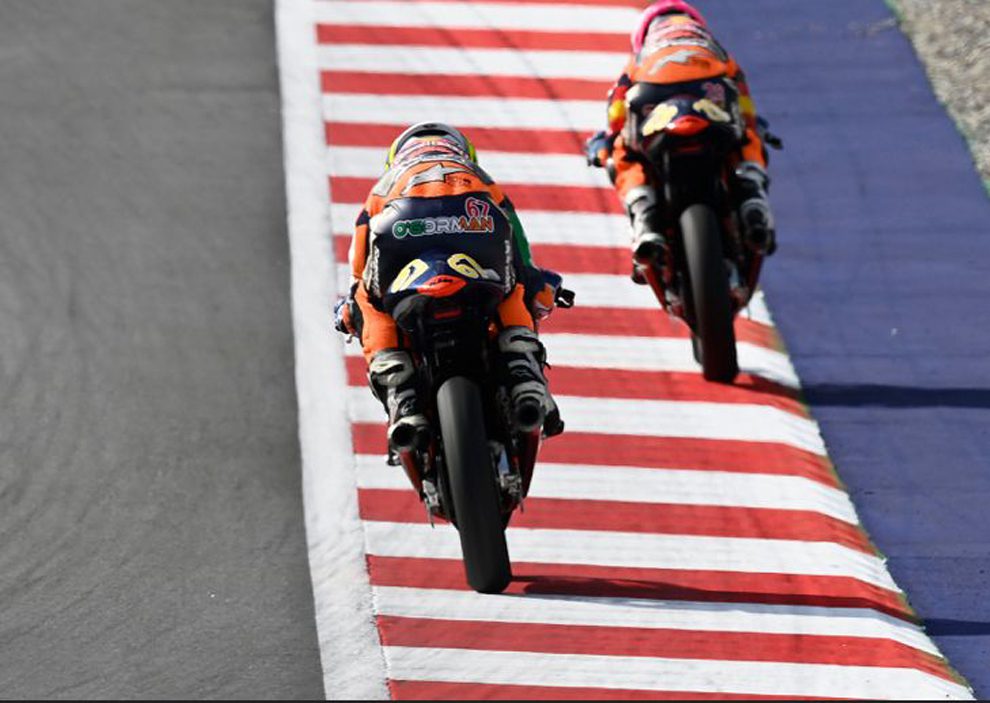 On his first visit to the circuit in Spielberg, the recently turned 15 year old was quickly up to pace, qualifying his 250cc KTM moto3 machine on the back of the third row in ninth for the weekend’s two races 0.850 seconds off the pole time set by Angel Piqueras.