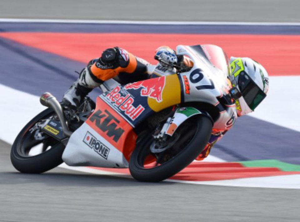 On his first visit to the circuit in Spielberg, the recently turned 15 year old was quickly up to pace, qualifying his 250cc KTM moto3 machine on the back of the third row in ninth for the weekend’s two races 0.850 seconds off the pole time set by Angel Piqueras.