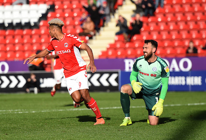 Charlton Athletic’s Lyle Taylor celebrates scoring their third goal