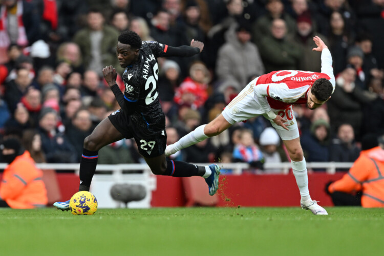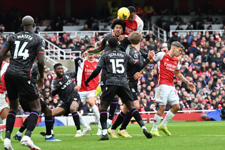 Arsenal took the lead after 10 minutes when Gabriel escaped Chris Richards and met Declan Rice’s corner to head beyond Dean Henderson.