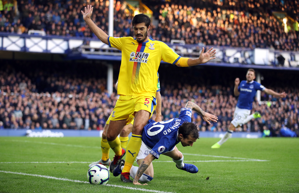 Then came the moment Palace had been looking for. Zaha tricked Seamus Coleman who brought him down inside the area and conceded a penalty. But Milivojevic’s wretched season reached a new low when he hit a woeful spot kick straight down the middle, low, only for Pickford to save with his feet.