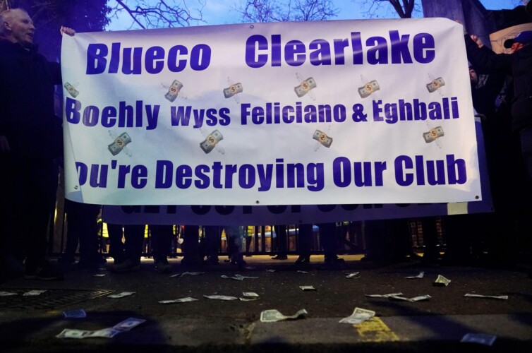 A small section of Blues fans gathered to protest over the running of the west London club before last week’s win over Southampton.