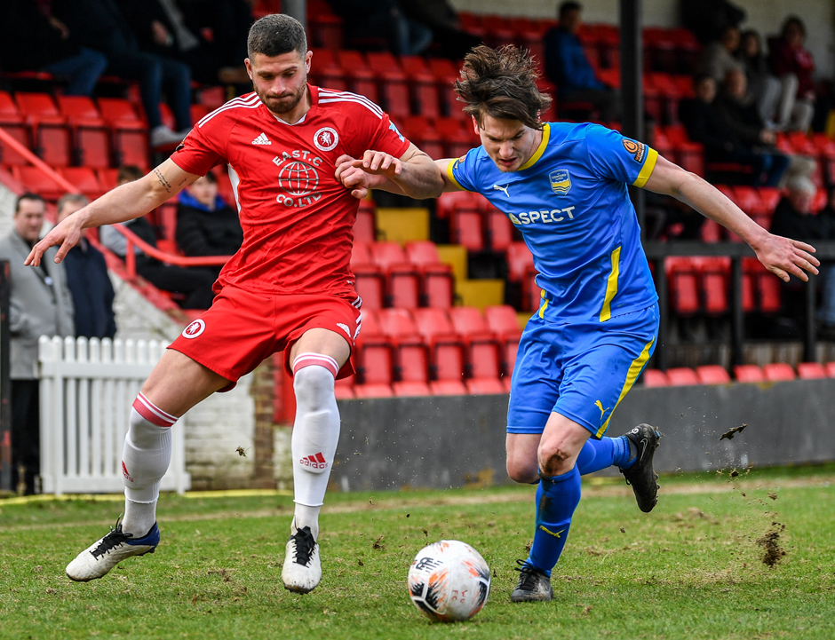 Ben Williamson shot well wide at the end of another break and Welling didn’t threaten again until stoppage time. Payne’s first shot was blocked wide by Jack Thomas for a corner. He had another opportunity from a similar position but his shot hit Beeney, who fell on it before it got away.