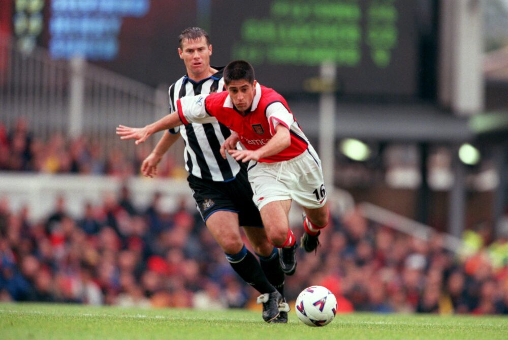 Arsenal’s Silvinho gets away from Newcastle United’s Rob Lee