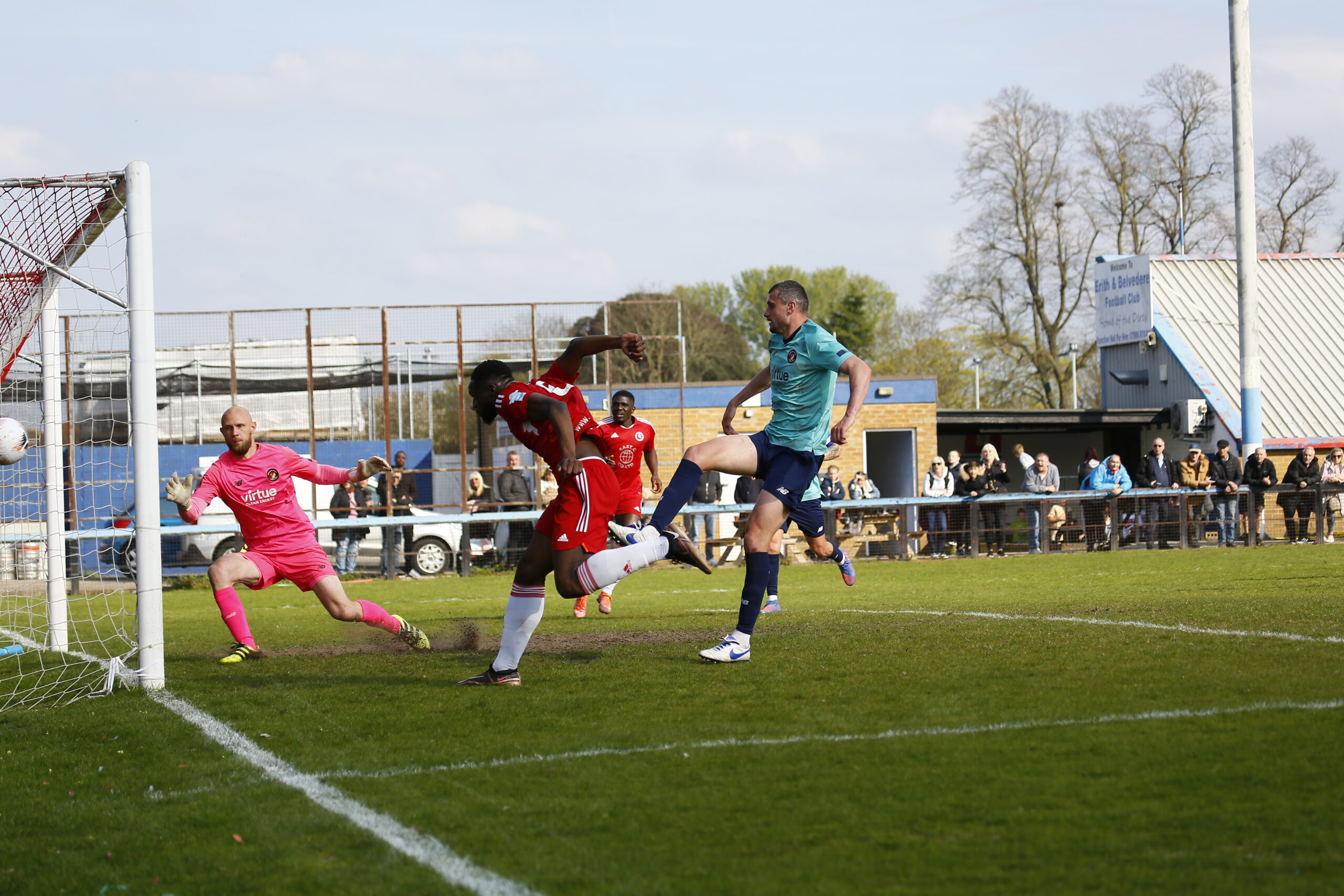 Eventually, Welling settled into the game and started to pose threats of their own and levelled with just over ten minutes remaining before half-time. Medy Elito delivered a free kick, Manny Parry headed back across goal, and Payne’s shot was deflected past Mark Cousins.