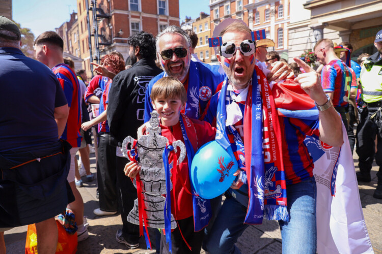 Crystal Palace supporters turned Covent Garden into a sea of red and blue before today’s FA Cup final against Manchester City.