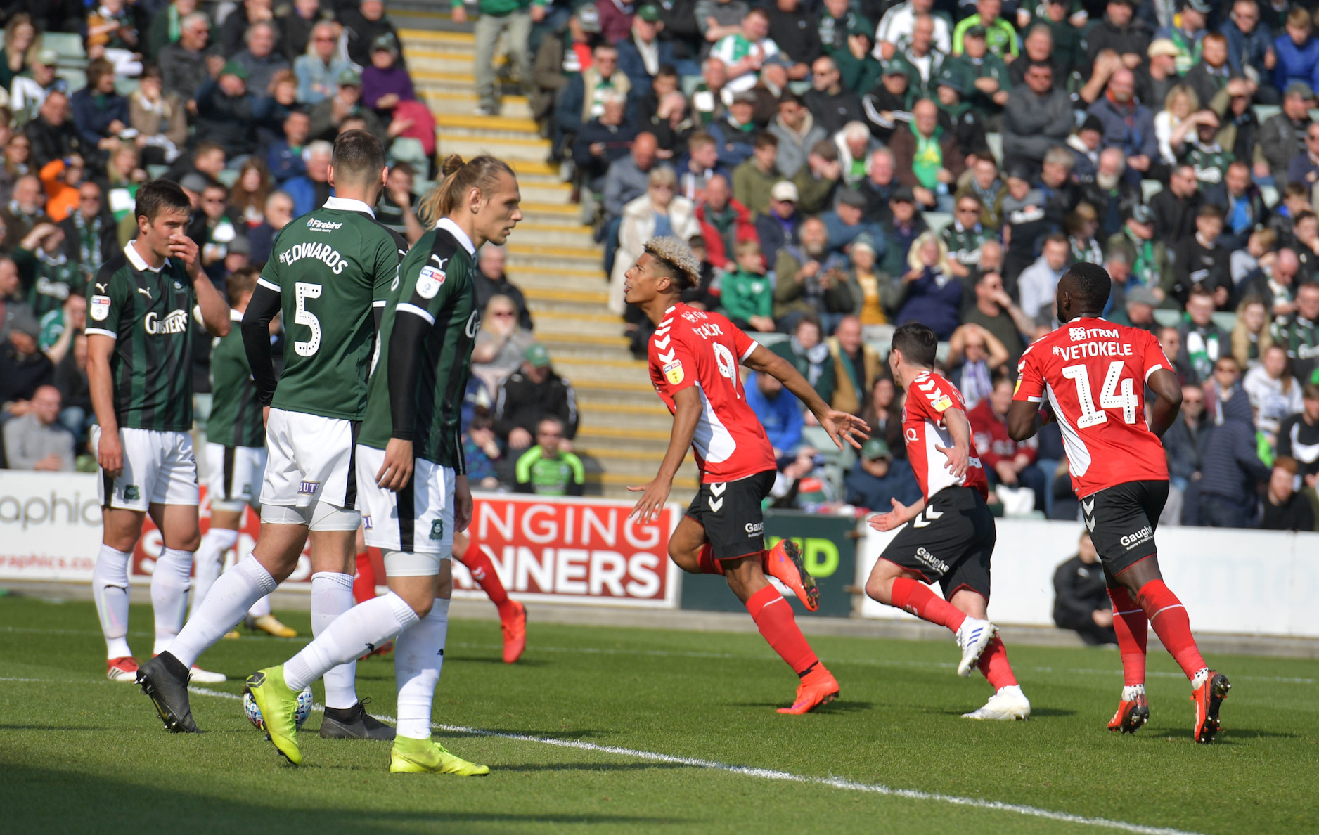 The visitors were now dominating and Taylor nearly linked up with Vetokele inside the area as the Angolan came an inch away from connecting with his strike-partners cross – but the Addicks had done enough to claim their first win at Home Park in their last four visits.