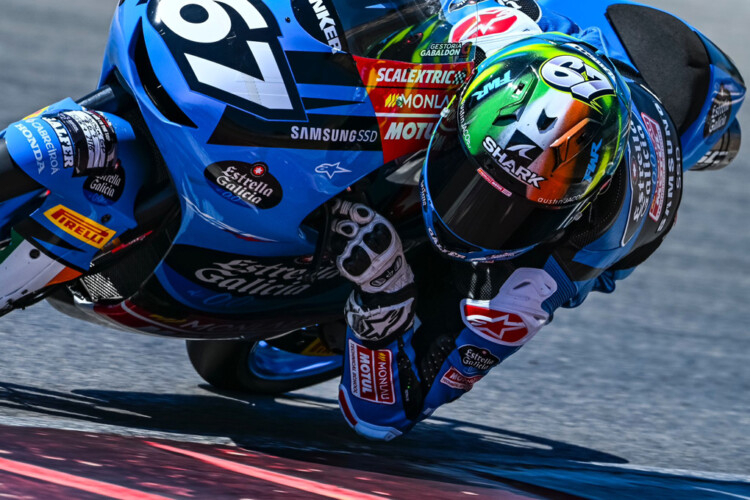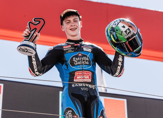 The 16 year old Team Estrella Galicia 00 rider made a solid start to the weekend, placing his 250cc Honda on the front row in second place for the two races on Sunday.