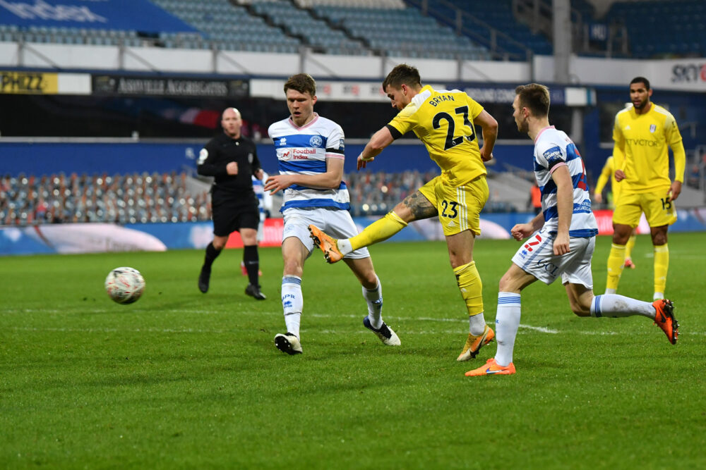 Shortly after, Joe Bryan came within a whisker of recreating his sensational Wembley goal from midway inside the hosts half. His lofted effort shaved the post with Seny Dieng stranded after the QPR keeper had gifted the full-back the ball with a sloppy clearance.