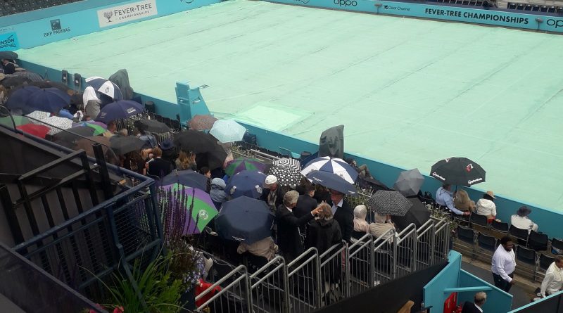 Rain wiped out play on day two of the Fever-Tree Championships at Queen’s Club – robbing an expectant crowd of some intriguing clashes involving British players, writes Yann Tear.