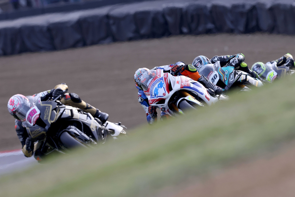 Seven laps in and Andy Irwin, Lee Jackson and Skinner all go down in front of Rea, promoting him to sixth but also causing the South Londoner to lose momentum, allowing the Ducati of outgoing champion Josh Brookes and Danny Buchan’s BMW to slip past him.