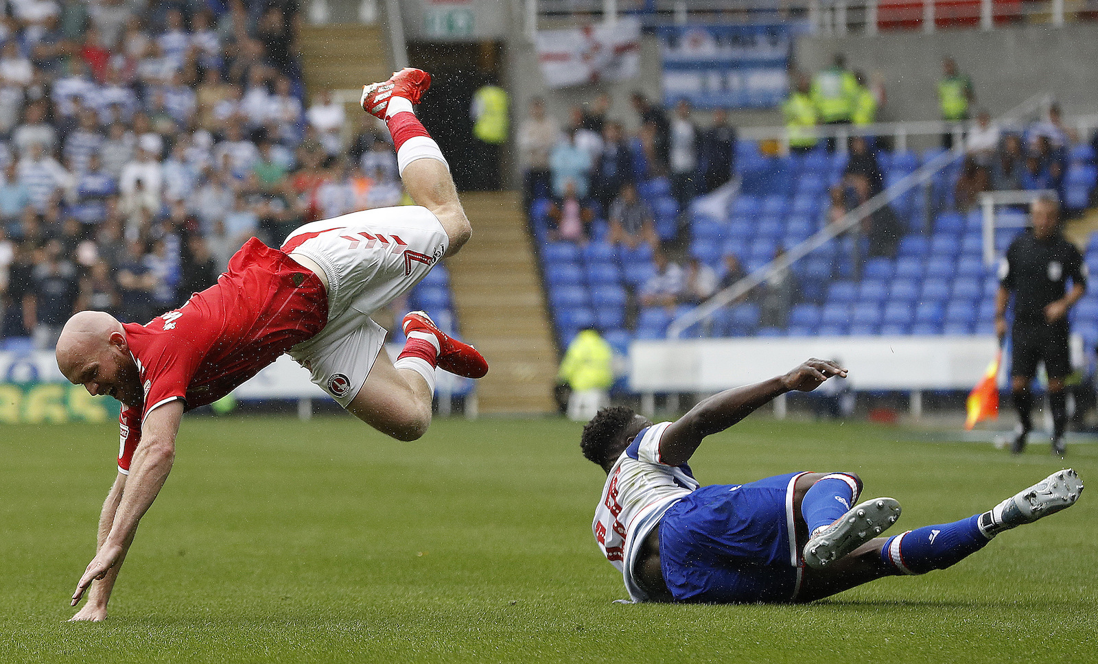 Reading’s Michael Morrison (left) challenges Charlton’s Jonathan Leko