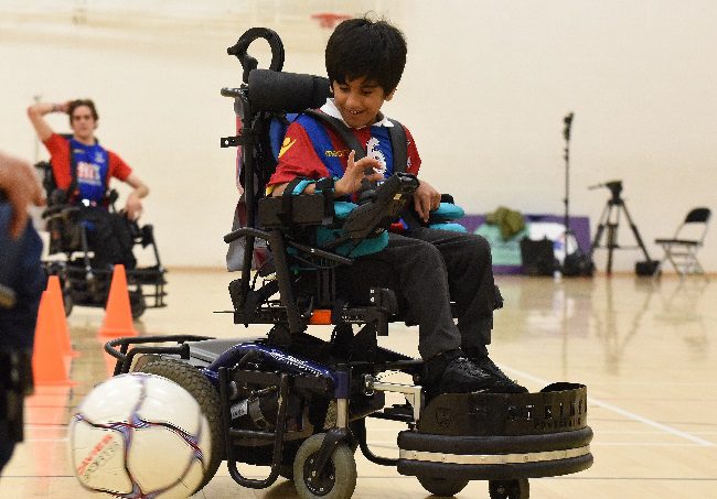 Powerchair football is for anyone who uses a powered wheelchair or has limited movement in a manual wheelchair.