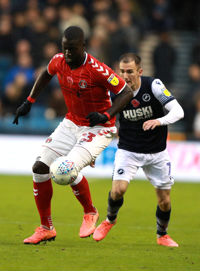 Charlton Athletic’s Naby Sarr (left) and Millwall’s Jed Wallace battle for the ball