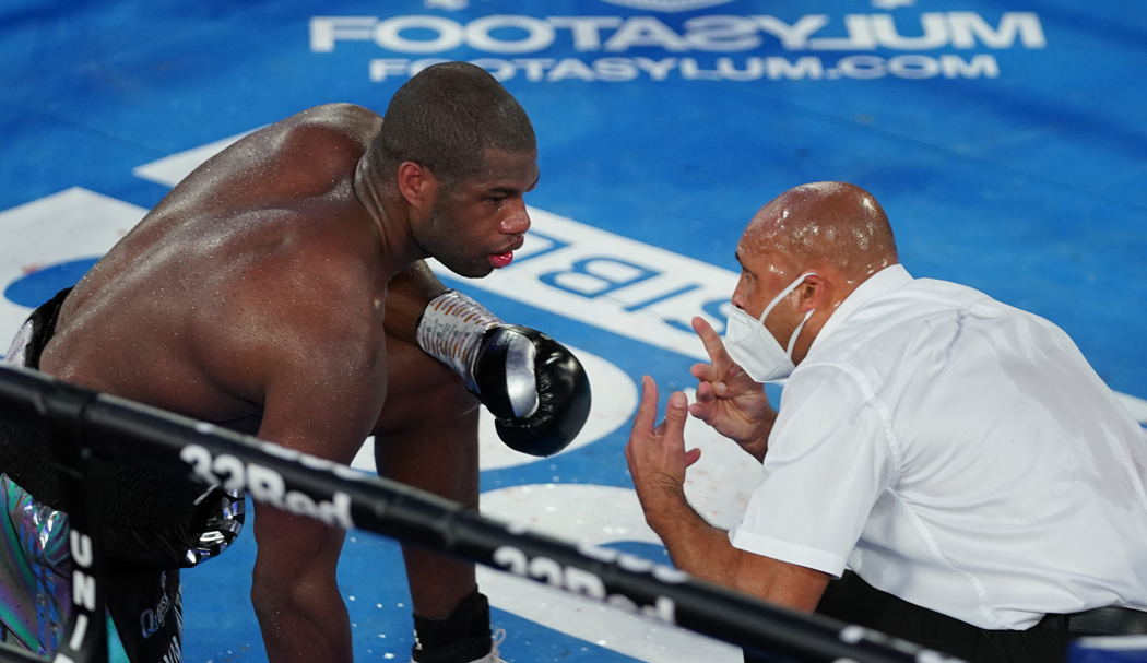 And that’s where we get to a sore subject. Because the debate will rage whether Dubois – ahead on two of the three judges’ scorecards at the time – should have continued.