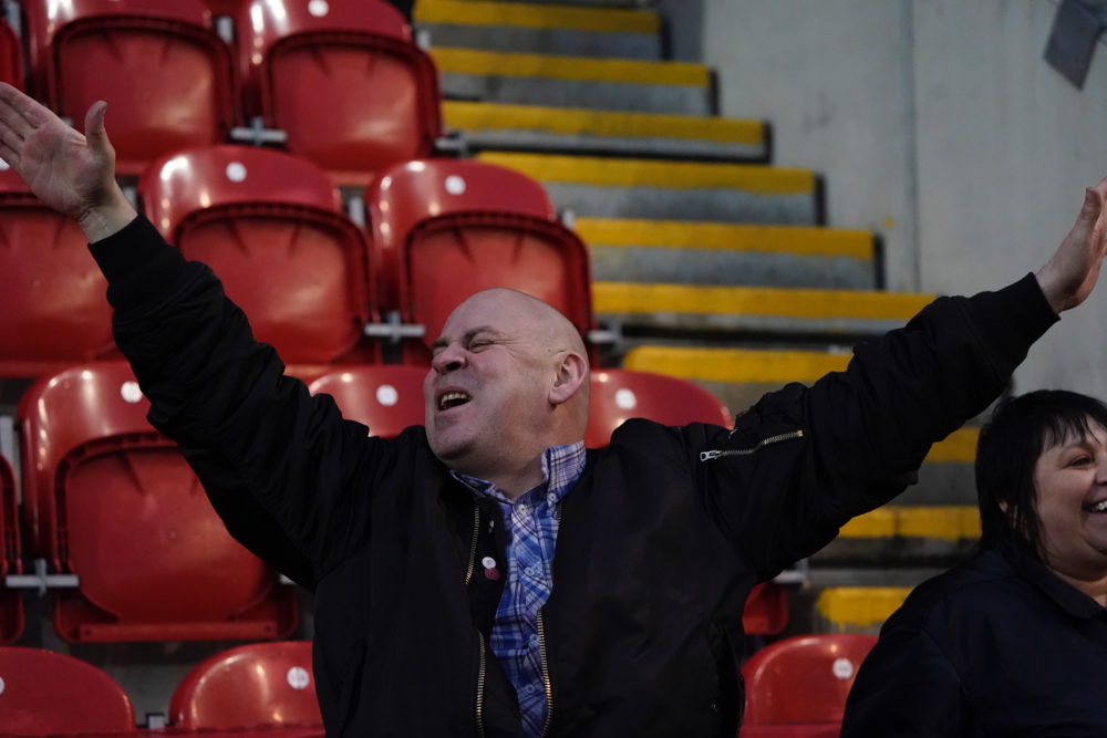 To the delight of the 248 Dons supporters who had braved the weather and reached Yorkshire despite the travel delays the Dons somehow weathered a storm of their own and took the precious lead into the break.