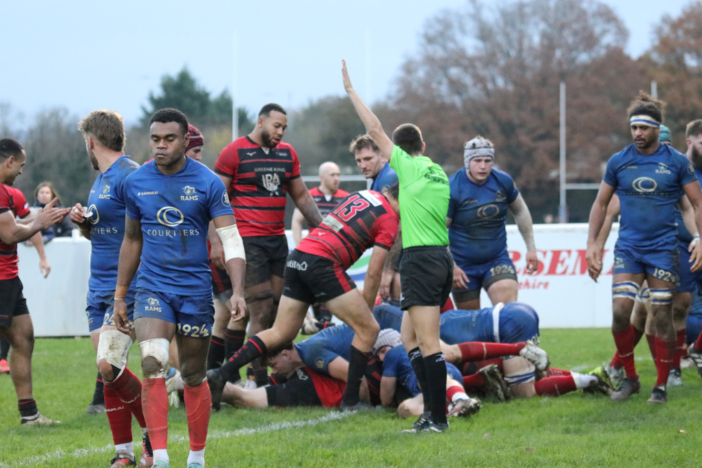 Blackheath ate a chunk out of the advantage after the restart. As Jake Hennessey and Will Davis attacked down the left flank, the loose-head drove close before Billy Harding finished off, only for another lineout move – enabling Rams number eight Robbie Stapley to drive across – to put the hosts 19-7 ahead.
