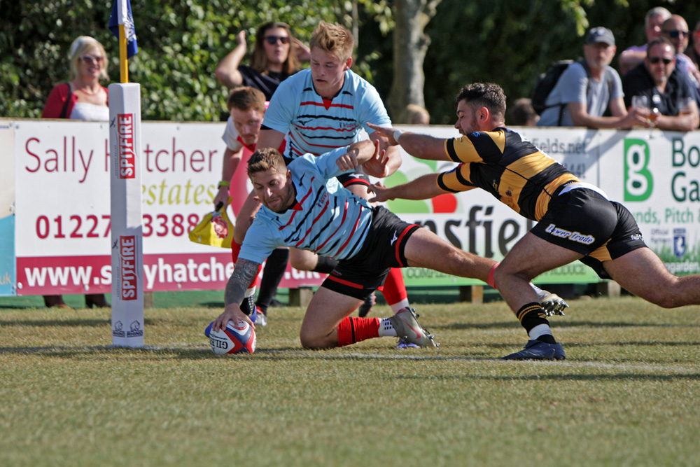 Playing down the Merton Lane slope, in near perfect conditions, the Club looked to open up the Canterbury defence from the outset, spoiling two opportunities with forward passes, before further quick handling down the left flank saw Jake Lloyd barge across for the first score.