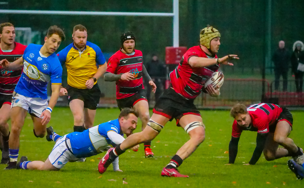 With the elements, including horizontal rain at times, now firmly in their favour, Blackheath started the second period brightly. Only a marginally-forward pass denied Harry Holland.