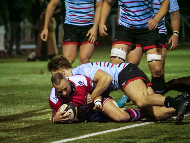 Only briefly though. Blind-side Dan Laventure peeled off a maul for the first of his three on 18 minutes, and as Park burst through a gap in the Club’s midfield to reach the goal-line, ball was played left for Craig Holland to cross, the fly-half converting his own score for a 10-point lead.