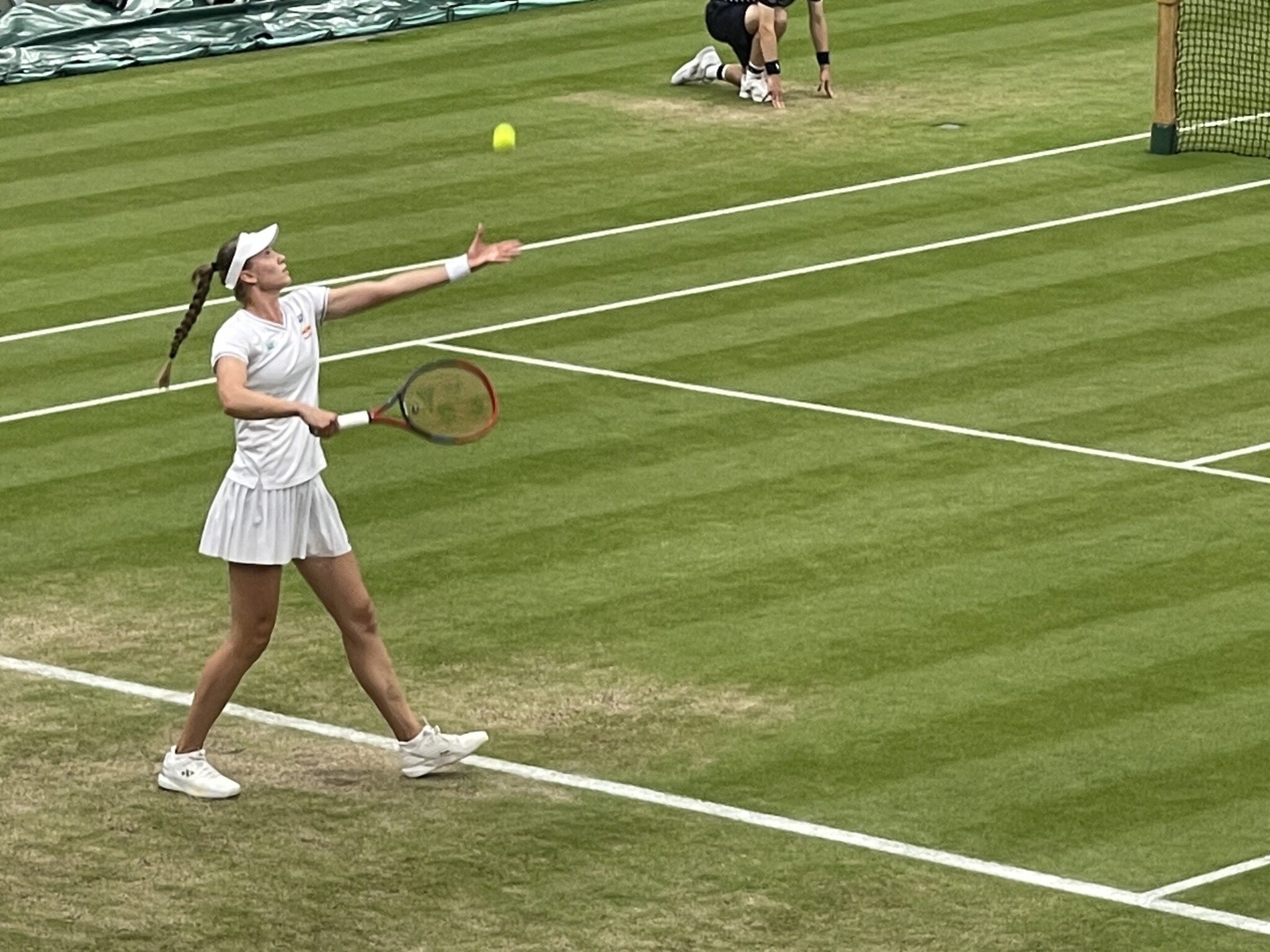 Kalinskaya had a medical time out during the break,  but failed to hold her serve leaving Rybakina to serve out the set, which she did – eventually — after a could of set points were saved by Kalinskaya.