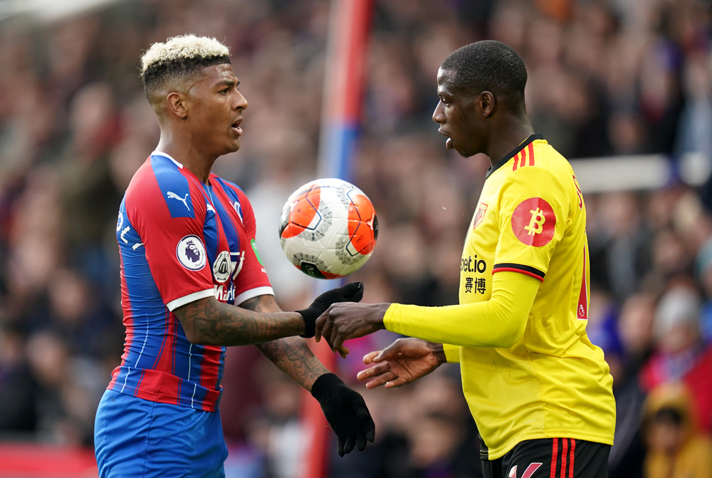 The Hornets were unhappy when Zaha went down easily under a challenge by Will Hughes late in the second half while already on a yellow card, and perhaps they had more of an argument for a red card in that instance.