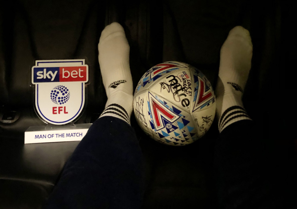 The former Fulham, Leeds and QPR frontman got the matchball signed by all of his team-mates – even Jayson Molumby.