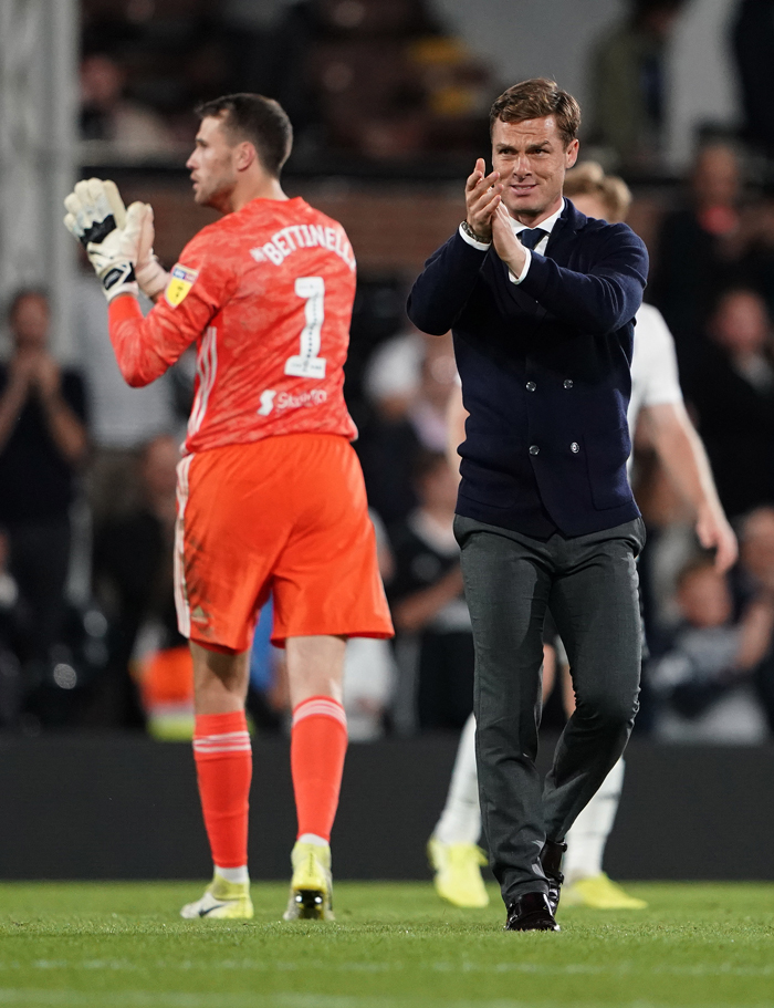Fulham head coach Scott Parker applauds fans at the full-time whistle