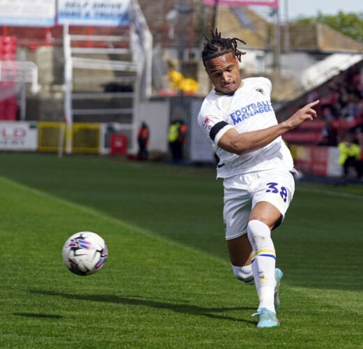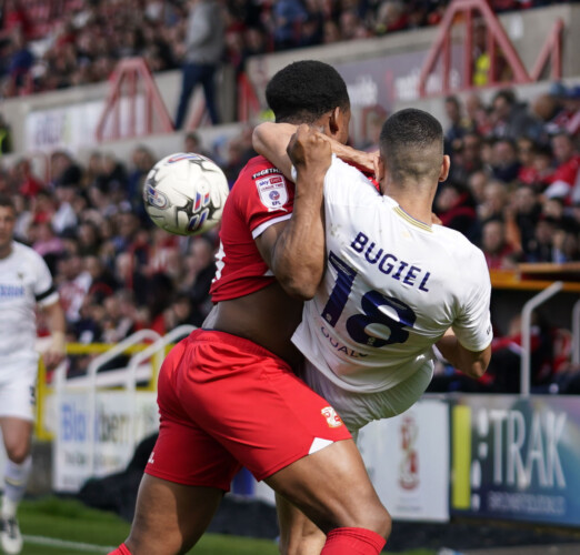 Lewis pulled one back for the Dons and scored his second of the afternoon with two minutes of normal time remaining when he headed Kofi Balmer’s cross past Jack Bycroft.