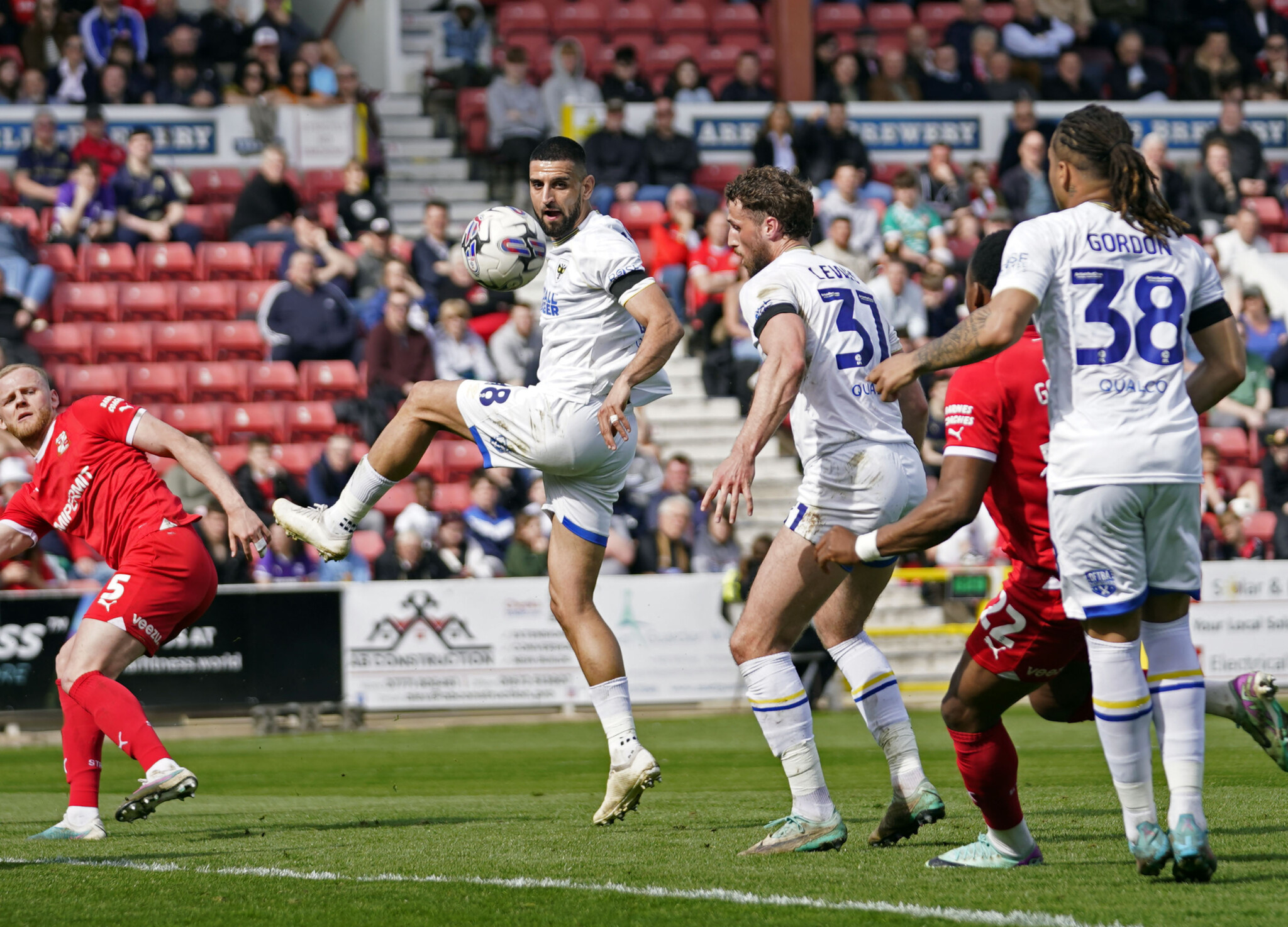 Lewis pulled one back for the Dons and scored his second of the afternoon with two minutes of normal time remaining when he headed Kofi Balmer’s cross past Jack Bycroft.