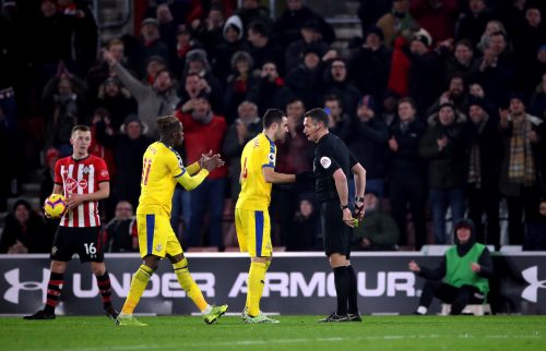 The game ended dramatically as Zaha reacted to a challenge from Ward-Prowse and was booked for doing so by Andre Marriner.