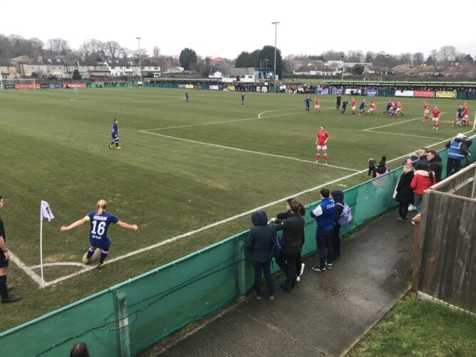The Addicks were forced into an early change when Charlie Estcourt was injured crashing into a hoarding – Georgia Griffin replaced her.