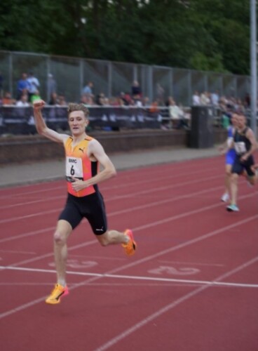 The men’s 1,500m G race saw three finish within a second of each other. U20 Harry Bell prevailed from among this trio, fourth in a PB 3:58.30, ahead of George Withers 3:58.85 and Andrew Warburton 3:58.93. In the H race Tom Patterson ran well for a season’s best 4:06.38 in sixth place.
