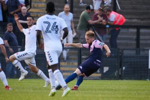 And Gavin Rose’s side equalised on 36 minutes courtesy of a wonderful goal from Byron Lawrence. The former Ipswich midfielder received possession 30 yards from goal and his speculative shot was initially met by groans given that he perhaps had better options – but the ball swerved away from Phillips in goal and into the net via the post.