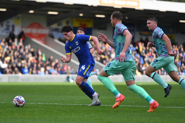 With Joe Lewis out for up to a month with the injury he picked up at Salford, midfielder by trade James Ball was filling in at central centre-back, with Riley Harbottle and Isaac Ogundere completing the back three.
